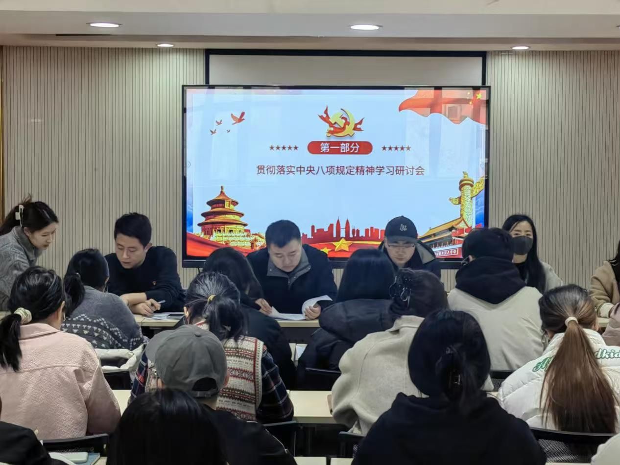 苟伟林传达了《关于在全校开展深入贯彻中央八项规定精神学习教育的实施方案》,领学中央八项规定的核心要义,并结合典型案例,逐条解读了“改进调查研究、厉行勤俭节约”等八项规定的具体要求。会议认为,作为新时代共产主义的接班人,应争做敢作为、有担当的新时代青年,以八项规定为镜,常照自身言行,在日常生活中发挥先锋模范作用。随后参会人员就“AI时代下师生协同创新教学”进行研讨,并填写调查问卷。