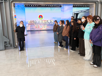 在讲解员引导下,同学们依次参观序厅、长空之危等主题展区,系统了解人民防空发展历程、空袭防护要点及西安人防建设成果。展馆通过实物陈列、多媒体演示结合VR模拟、应急实训等形式,为同学们打造“看得见、摸得着、能体验”的安全课堂,让大家在直观感受国防建设成就的同时,沉浸式学习应急避险、自救互救等实用技能。