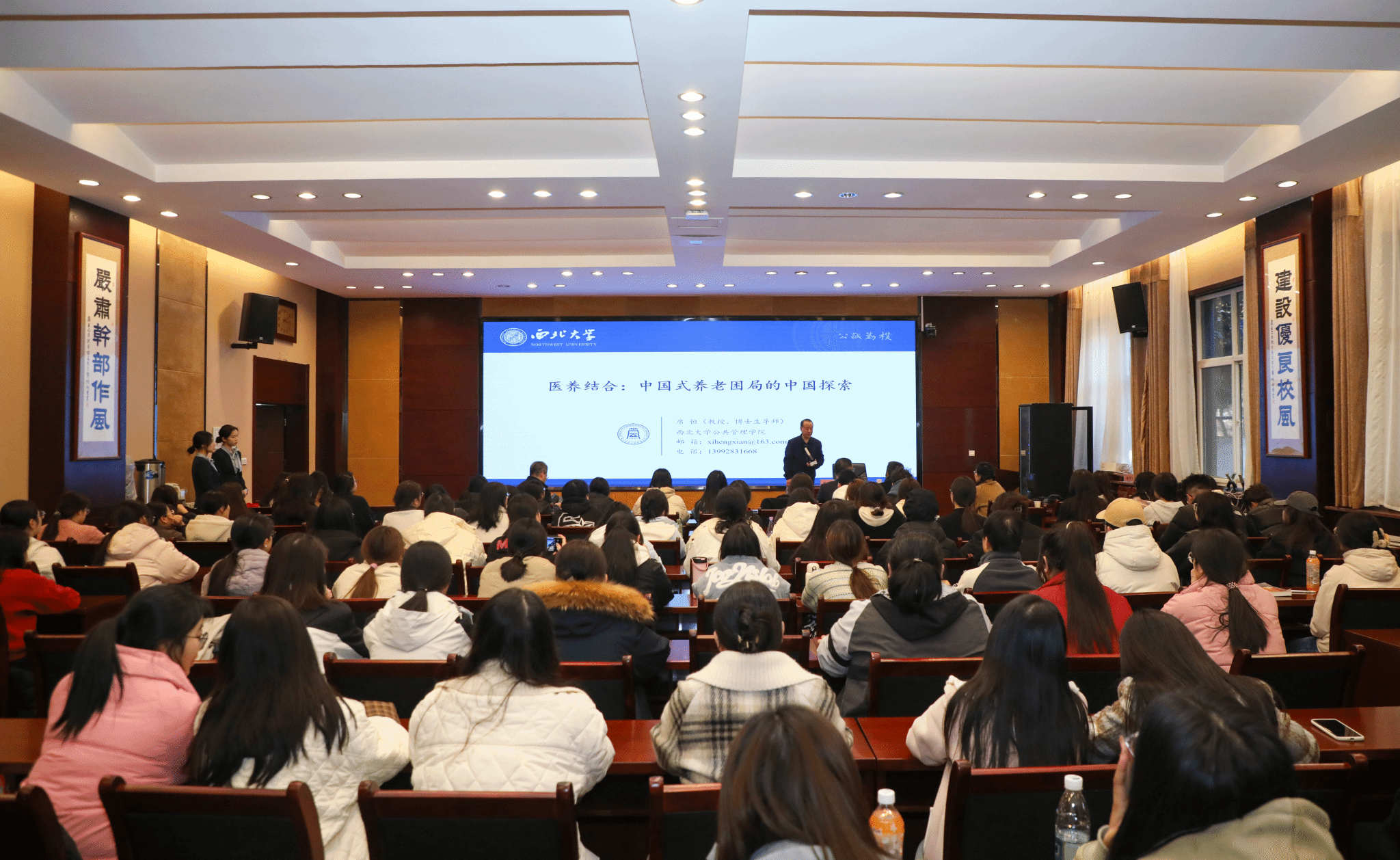 2024年11月27日,英国365公司官网“七个五”首席专家、西北大学公共管理学院二级教授、“三秦学者”席恒教授莅临公司指导养老服务管理专业建设工作,并作“医养结合:中国式养老困局的中国探索”专题讲座,副董事长刘明利、英国上市公司365经理闫荣国、党总支书记陈沛、副经理董冠华、贺志武及养老服务管理专业全体师生参加指导交流会。会议由闫荣国主持。