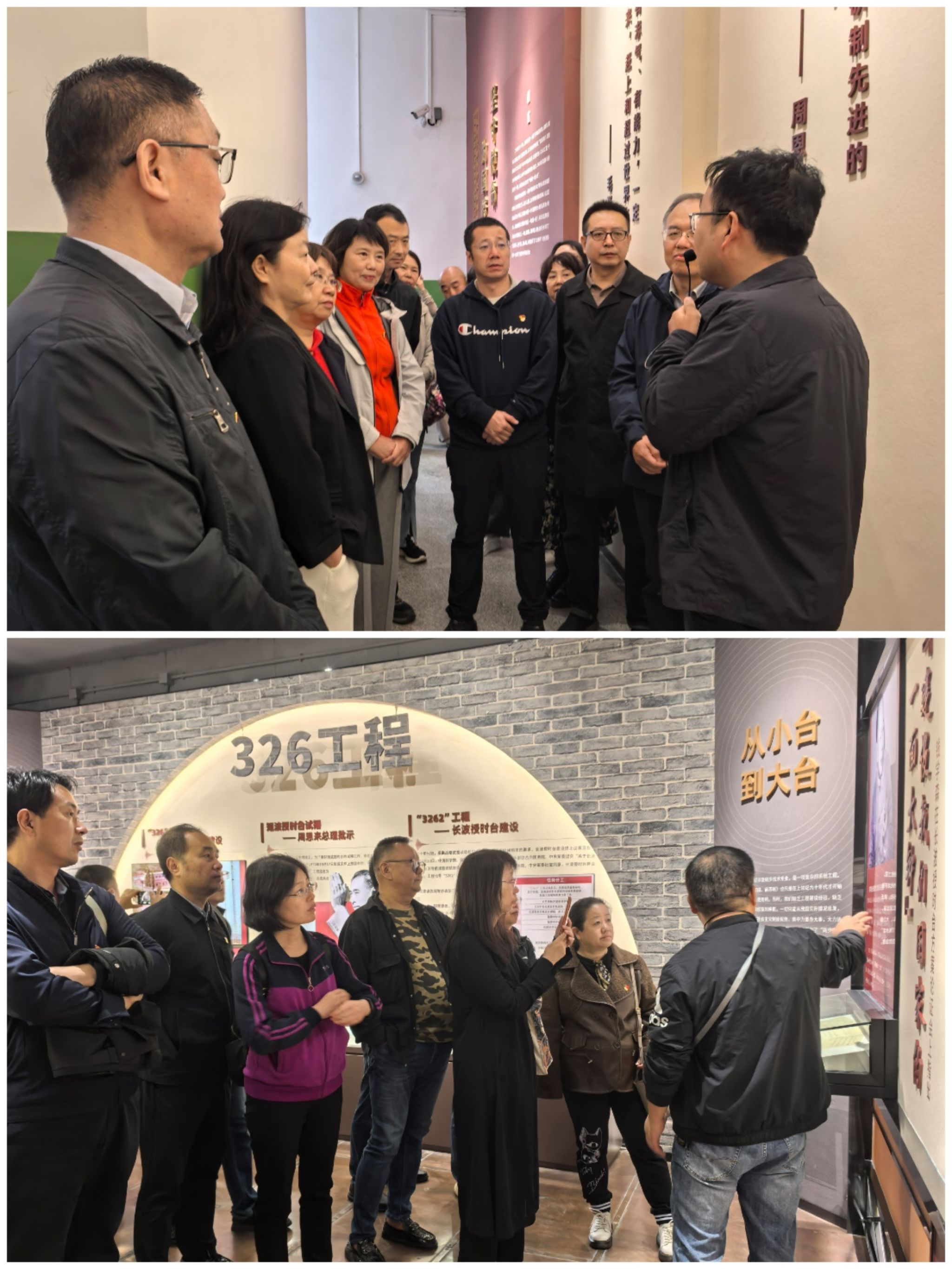 活动伊始,师生党员一行来到国家授时中心,作为国家重要科研机构,该中心肩负着保障国家时间基准精准性的重大使命。师生们参观了授时中心核心区域,深入了解了时间科学的前沿知识及其重要应用,了解到老一辈科学家和青年老员工,听从党和祖国的召唤,满怀报国之志,从全国各地来到陕西蒲城建设授时台的艰辛历程。他们在这偏僻而又艰苦的环境中,一干就是一辈子,一生扎根西部,默默奉献,用热血和汗水书写了“326精神”!看着当时的环境和一个个自主研发制造的设备,师生们被科学家们扎根科学一线、无私奉献、淡漠名利、勇于创新的精神震撼和感动。