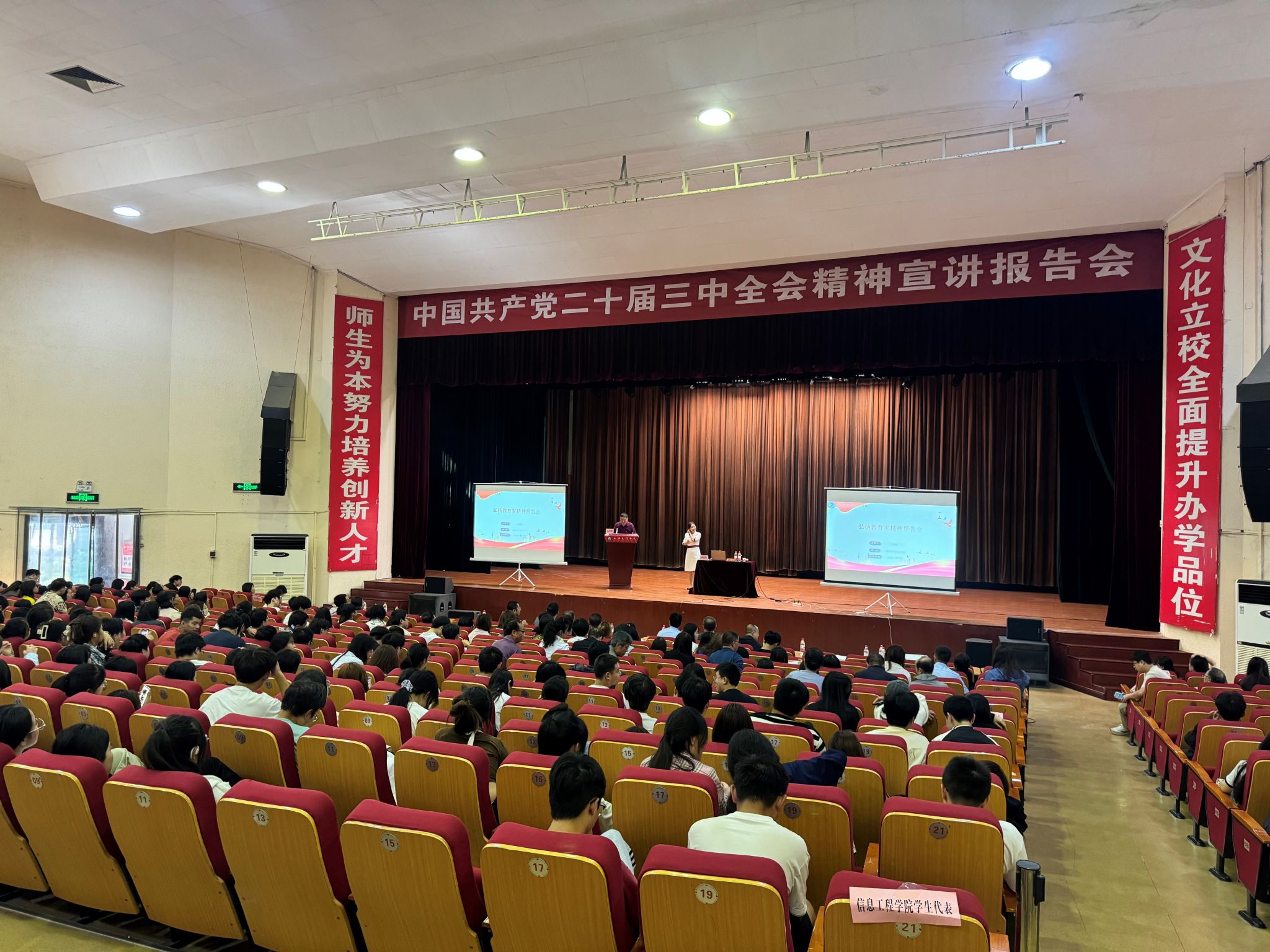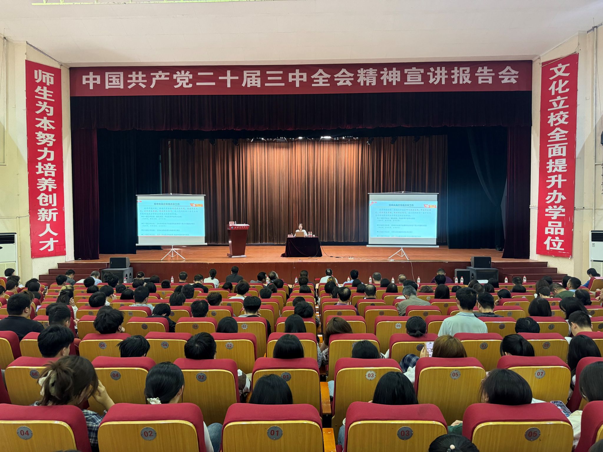 为了深入学习中国共产党二十届三中全会精神,弘扬教育家精神,提升教师及员工队伍的思想政治素质和公司产品水平,进一步推动公司产品改革与发展,2024年11月16日下午,信息工程学院、英国上市公司365、美术与设计学院在大礼堂联合召开了中国共产党二十届三中全会精神暨教育家精神宣讲会。参加会议的有三个学院领导班子、全体教职工及员工代表800余人。