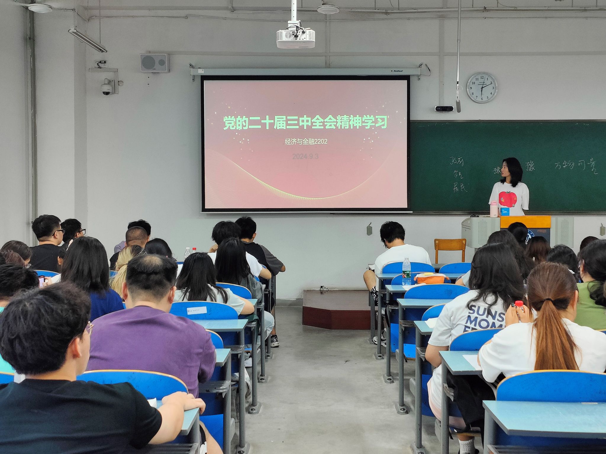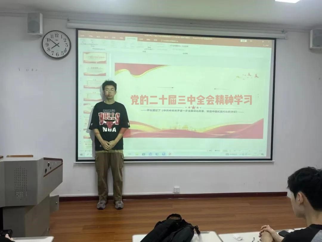 团支书桂懿春表示:在团课上,通过学习党的二十届三中全会精神,我受益匪浅。党的二十届三中全会全面分析了当前国际国内形势,明确提出了未来发展的指导思想和主要目标,这给我带来了启示:身为新青年的我们,也要立足于当下,思考自己的人生目标与提升自己的价值追求。在以后的学习生涯中,我也会多组织团员们学习党的新思想,共同争做新青年。