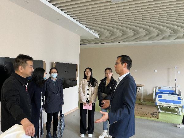 会后,严经理一行参观了公司正在建设的养老服务管理专业实训室,从实训室功能划分、实训设备摆放、实训课授课等方面对公司实训室建设提出了宝贵的建议和意见。