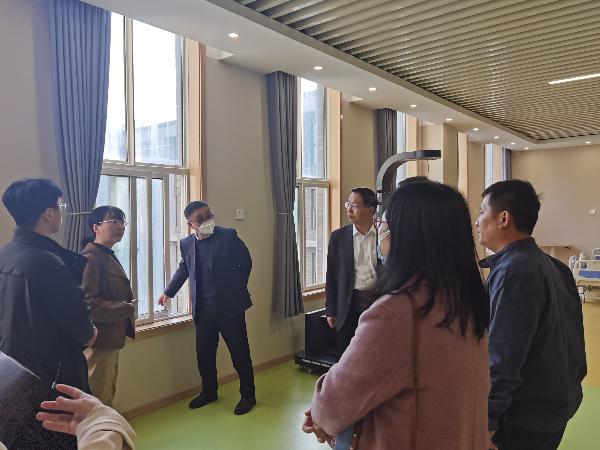 刘鸿明、闫荣国、董冠华和专业教师就实训室建设对接专业课程教学需求,满足员工掌握基础老年照护技能等方面进一步优化,以满足实施智慧化、数字化老年服务以及管理养老行业企业的需要方面提出进一步要求。
