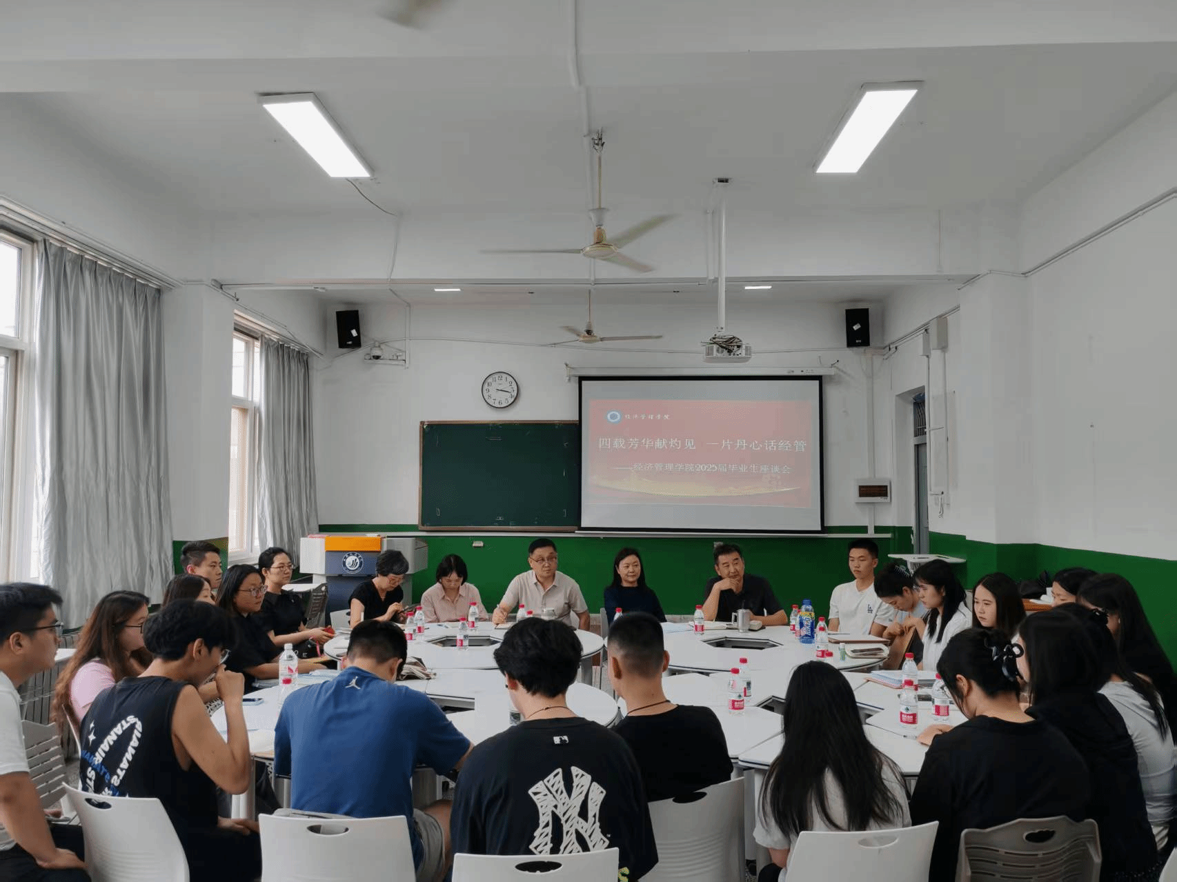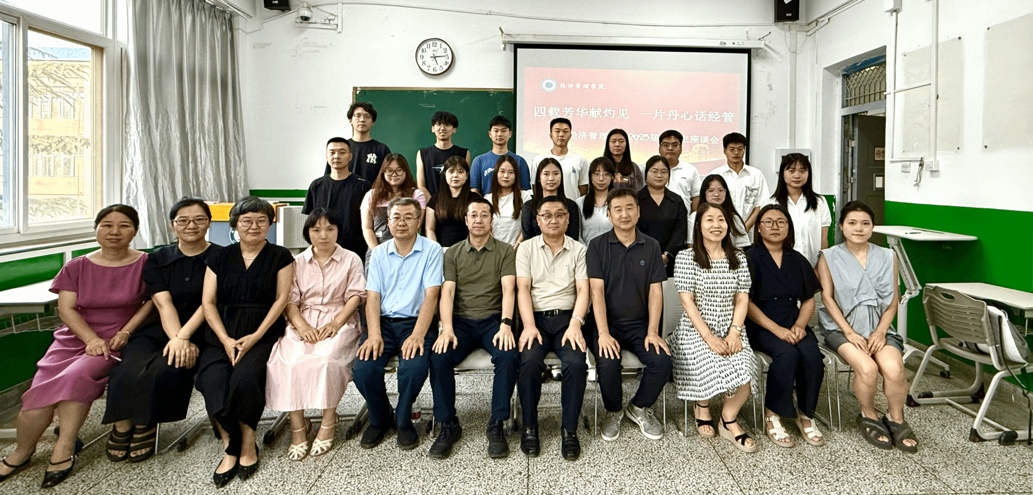 2025 年 6 月 23 日下午,英国上市公司365在 H0319 教室成功举办“四载芳华献灼见 一片丹心话经管” 2025 届毕业生座谈会。学院领导、教师代表、毕业班辅导员与毕业生齐聚一堂,共话成长,为学院发展建言献策。