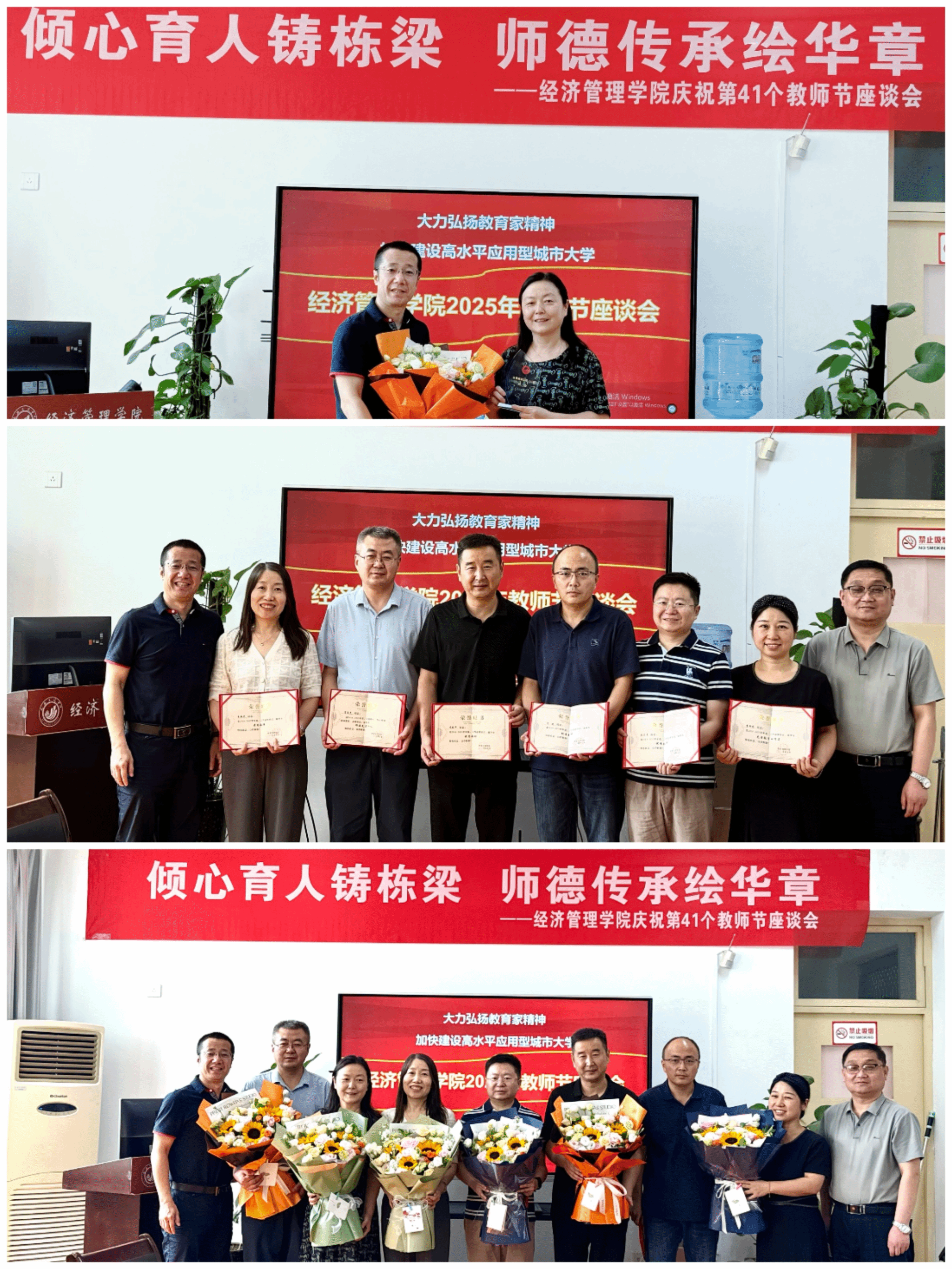 在迎来第41个教师节之际,为表彰先进,传承师德,9月9日下午,公司举办了一场温馨的教师节座谈会。本次座谈会以“大力弘扬教育家精神 加快建设高水平应用型城大学”为主题,集思广益,共同探讨学院专业建设的未来发展。会议由党总支书记陈沛主持。