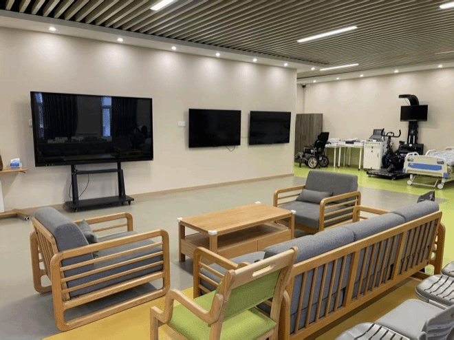 养老服务管理专业实训室共分三期建设,总投资约458万元。目前已完成实训室一期、二期建设,三期建设正在进行中。养老服务管理专业实训室由老年照护服务实训室和智慧养老管理实训室两部分构 成,每一间实训室占地约120平米,实训室使用面积共计约240平米。老年照护服务实训室打造全场景模拟照护空间,通过实景化生活场景与专业设备,开展翻身护理、洗浴协助等多项实操训练,配备老年人专用护理床、步态训练仪等设备,让员工在沉浸式环境中掌握核心照护技能。智慧养老管理实训室融合了AI、VR、物联网等前沿科技,搭载VR养老院模拟系统、认知康复训练系统等智慧设备,构建多学科创新平台。员工可通过虚拟现实技术开展全流程养老机构运营演练,运用肌少症评估工作站、心理沙盘等设备进行健康管理实践。创新引入智能身心反馈系统,结合艺术治疗箱等工具,培养“科技+人文”复合型人才。打造多场景、成体系,三个梯度配置,层级分明、层层递进,硬件设施与软件平台数据协同,业务运营数据统一管理,前沿科技真实体验等多维度实训平台。