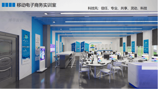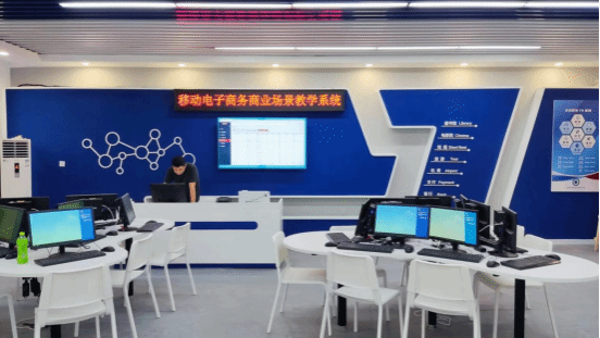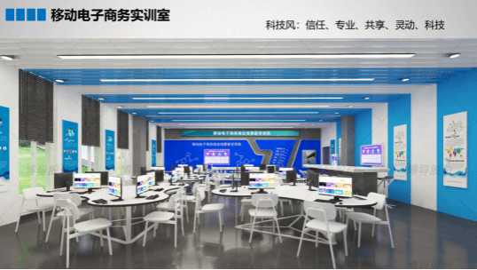 电子商务多功能实训室(二)位于公司明德楼B0420教室,面积130平方,员工用机42台。实训室基于“创业教育+项目运营”的思路,让员工可以从网上开店、商品发布、订单管理、客户服务、网店运营管理等各个环节得到实践锻炼机会,极大的巩固员工对电商平台的应用能力,实现工学结合人才培养。