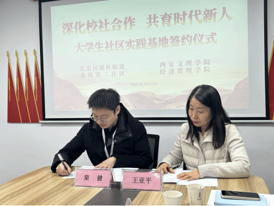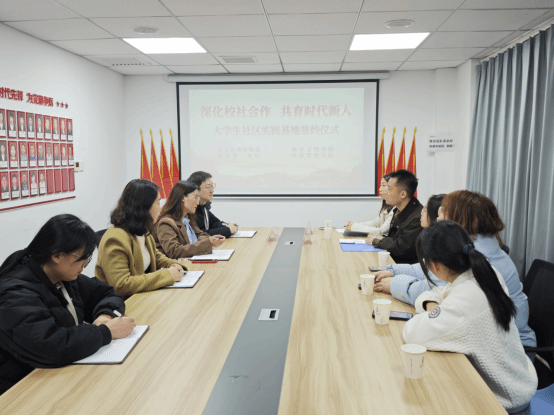 调研结束后,双方举行老员工社区实践基地签约仪式,正式建立长期合作育人关系。王亚平与辛莫野老师围绕人才培养、实践教学、社区服务等方面与社区工作人员展开交流,进一步优化社会工作专业人才培养路径。
