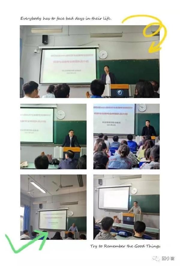杨曼利副教授为大一新生提出了四点衷心建议,一是树立三观,拥有独立人格;二是在大学这个新环境中重塑新形象;三是努力学习,提高自己的专业知识;四是学会自我管理,规划时间,调整情绪。孙小民副教授用接地气的小故事,结合经济与金融专业告诉新生要在大学四年有意识地去理财,为毕业后更好地融入社会打下坚实基础。梁迪博士围绕学制学历、培养目标、就业方向三个方面为新生树立了学习的风向标,激励员工努力学习专业课知识,勇于实践,全面发展。王景红副教授以“三五四计划”开头,教导大一新生将所学知识转化为个人技能,对大一新生寄予了殷切期望。杜轶龙老师为大一新生介绍大学的创新创业大赛情况以及人才培养实践环节,同时给大一新生提出了十点毕业要求,强调了创新的重要性。本次活动还邀请了优秀学姐蒋京亚来为学弟学妹分享自己的宝贵经验,她提出一是努力学习专业课,提高自身素养;二是做好时间规划,不虚度大学时光;三是积极参加社会实践,为步入社会积累经验,并对学弟学妹送上了美好祝福。