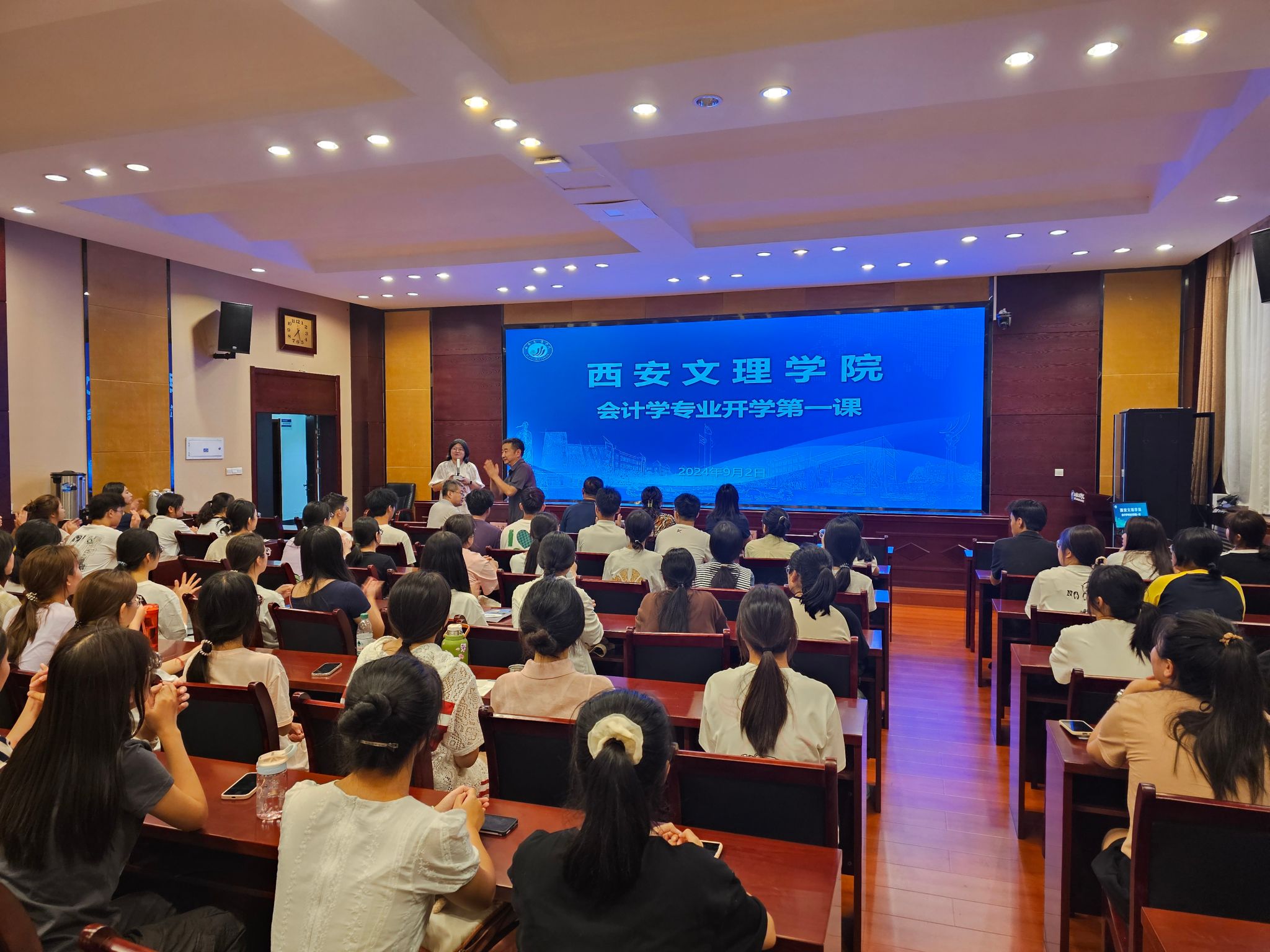 专家们聚焦入校新生的适应与成长,未来职业蓝图规划等问题,解答了会计是什么?学什么?怎么学?又该如何考取会计人的职场通行证?选择会计,将开启怎样的职业生涯?在智能时代如何学习保持与时代同步,找准定位等问题。勉励同学们要有不断学习的精神、不断探索和吸收新知识的能力、坚定的理想信念、对财会工作的热爱。